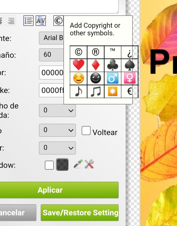 Esa opcion nos permite agregarle unos simbolos a nuestro texto. Incluyendo el copyright, y un corazon.