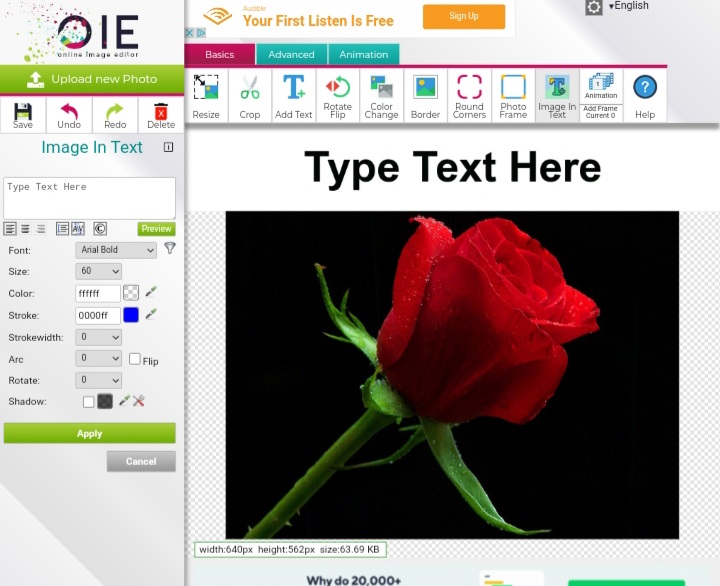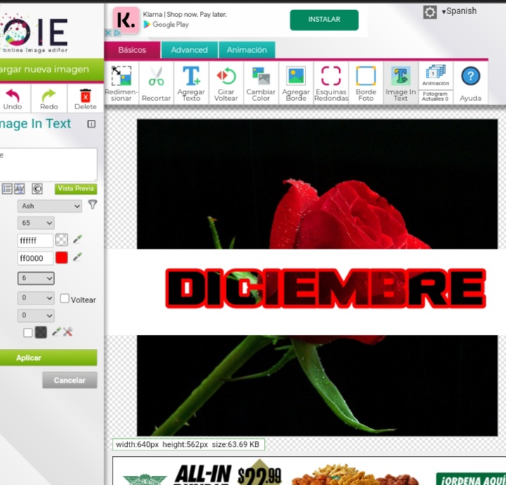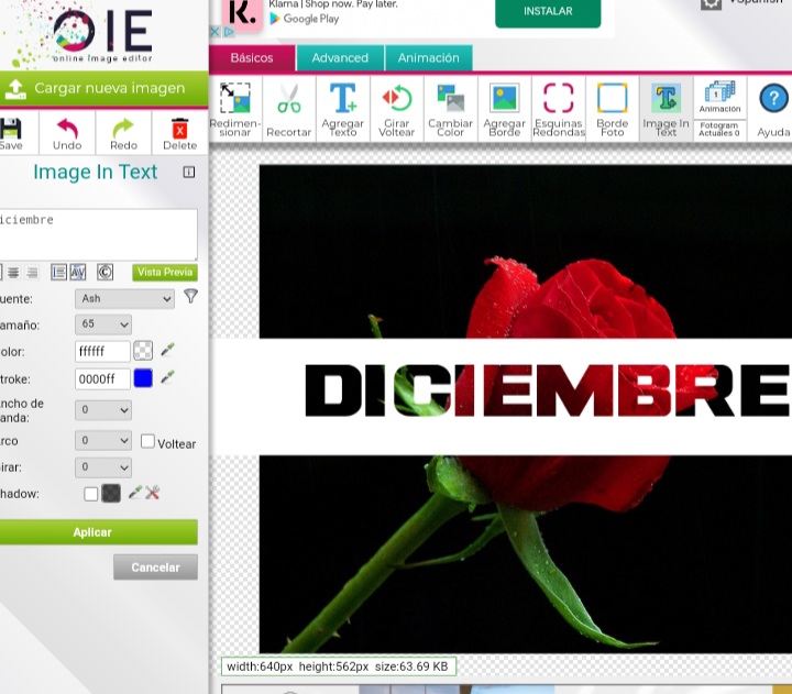Para “personalizar” mi imagen le puse la fuente/font de Ash y le cambie el tamaño a 65.