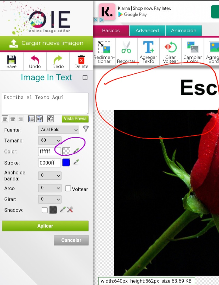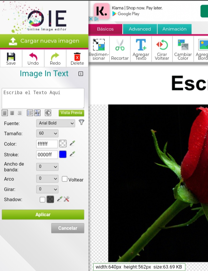 Al guardar su imagen asi se ve. Como ven la imagen desaparece y lo unico que queda es la parte que tenia Texto arriva.
