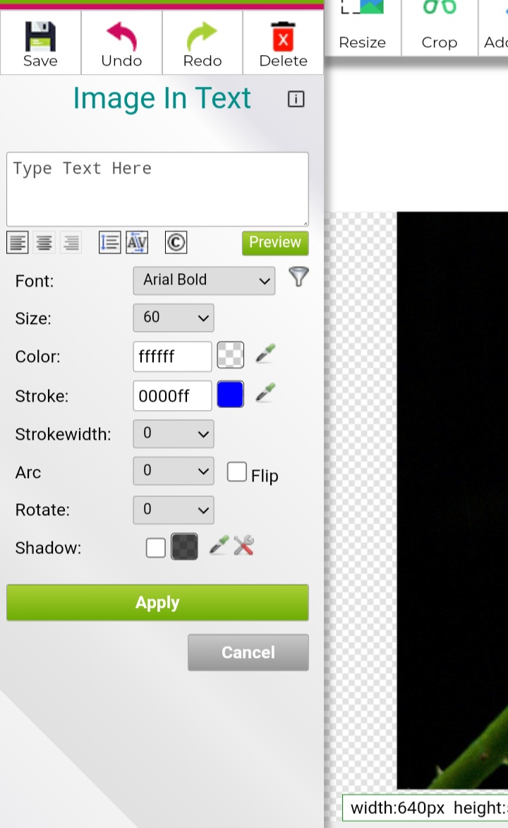 La imagen quedo dentro del texto. Y el texto lo podemos personalizar como el texo normal. Con sombra/shadow, stroke, arco,giro, tamaño,fuente/font ect…