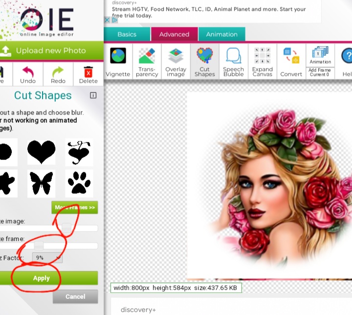 Luego Vamos a mover la imagen para que la cara de la monita este dentro del circulo.