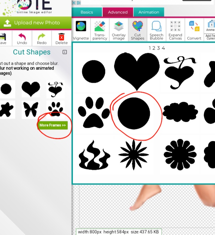 Vamos a prrsionar donde dice mas marvos o more frames. Y escojeremos el circulo mas grande.