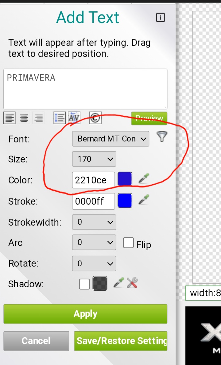 Van a escojer una fuente/font. Yo escoji Bernard MT condensed.