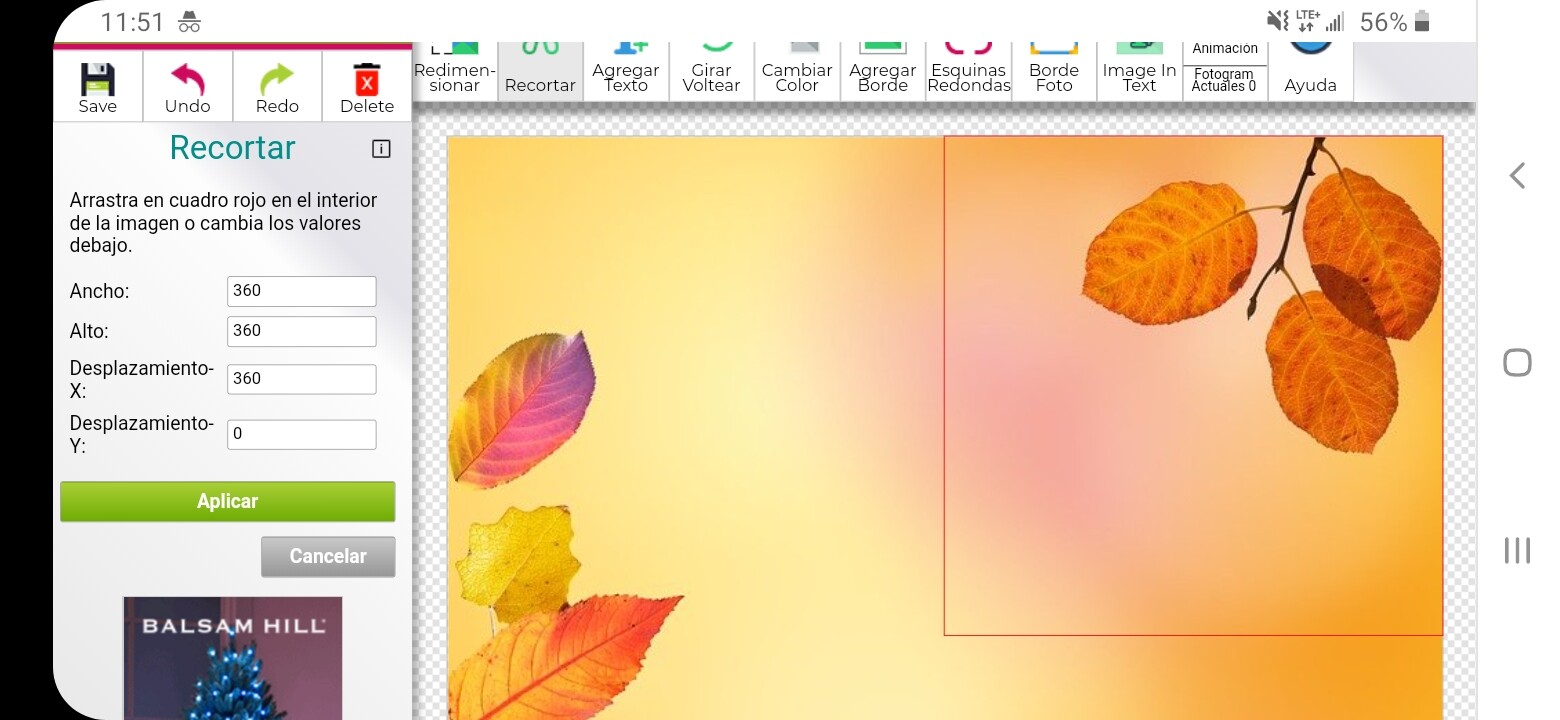 Si estan del Celular con el dedo van a presionar el centro de la cajita roja y van a moverla a donde quieren recortar.