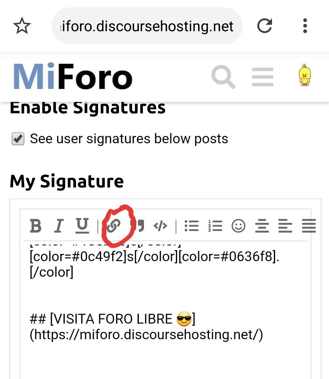 El hipervínculo es para insertar la direccion del foro o cualquier direccion verdad?