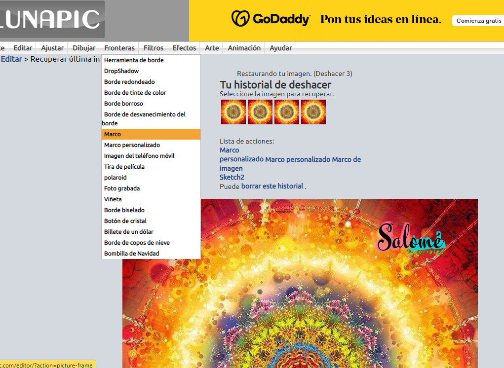Despues te sale una ventanilla para escoger otra imagen (esta la va a utilizar para enmarcar tu anterior imagen) Te da la opcion de subir imagen , se te abre una ventanilla desde tu pc, escoges la imagen, y le dascargar ahora
