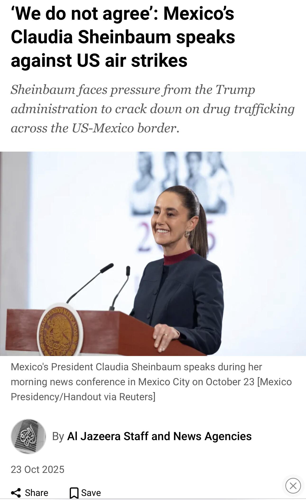 MARINA DE MÉXICO INTERVIENE TRAS BOMBARDEO DE EE.UU.; SHEINBAUM MANDA NAVIOS