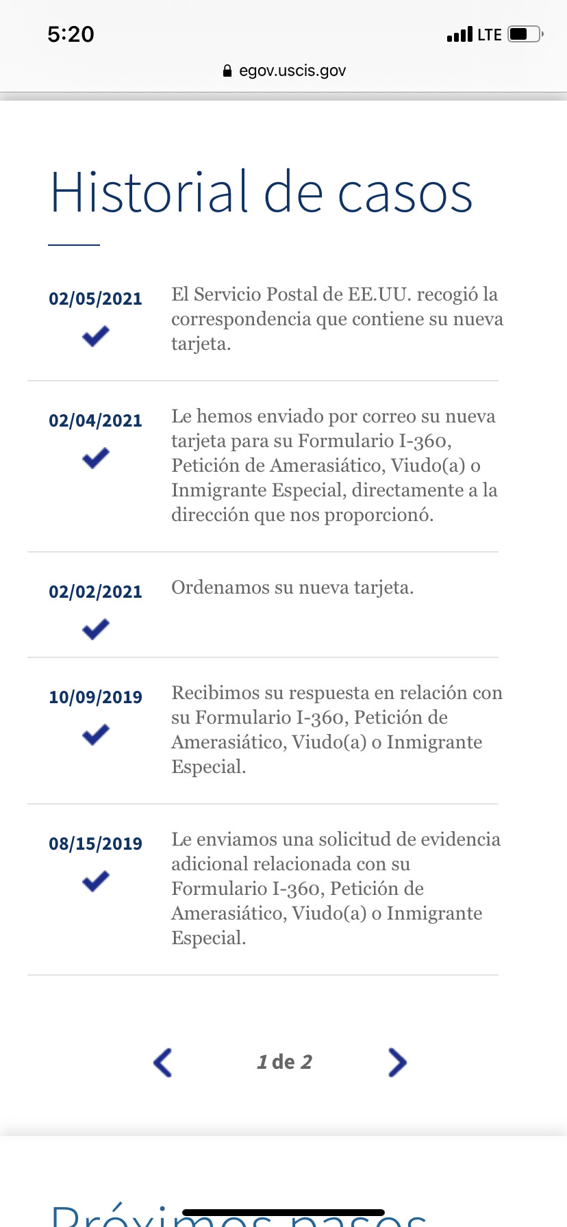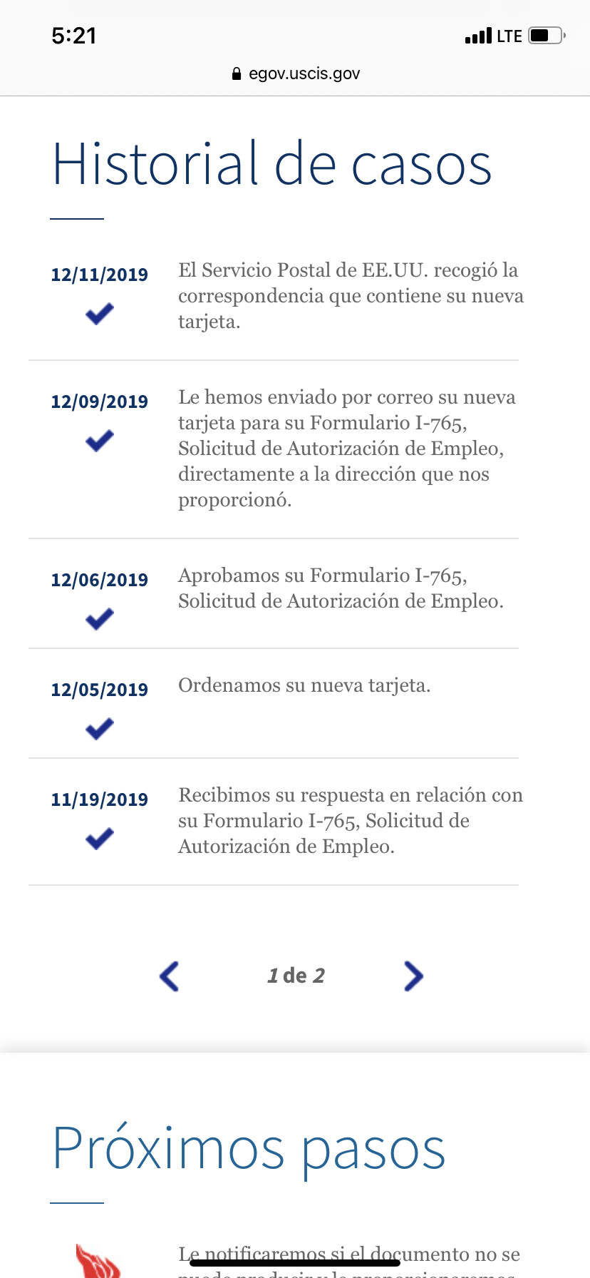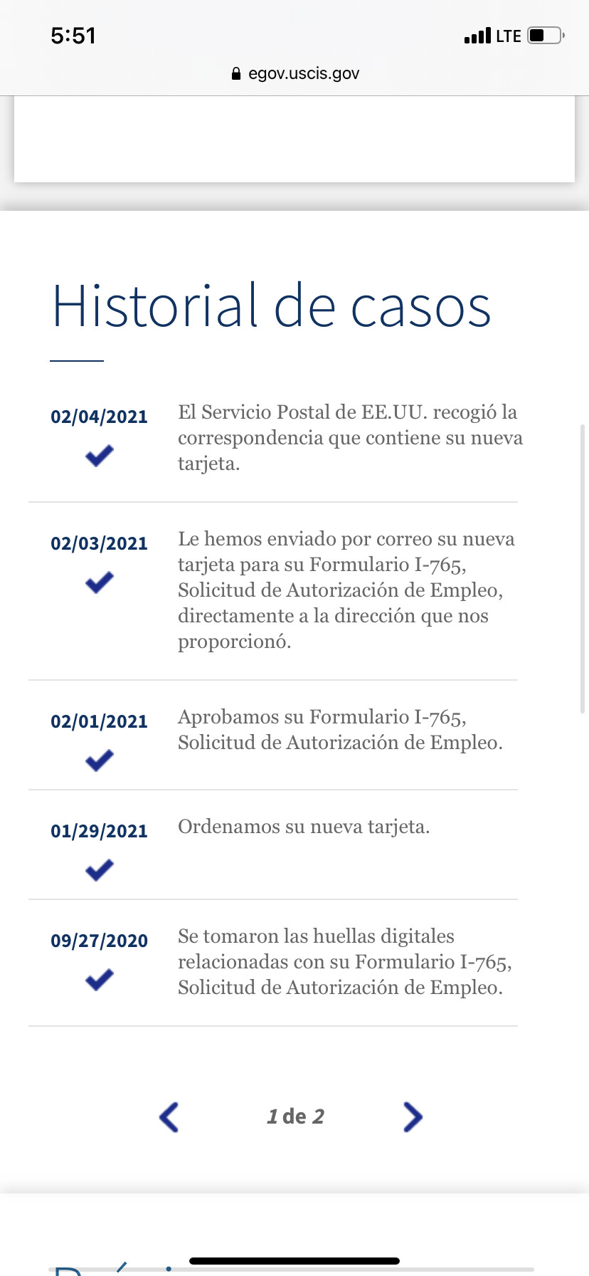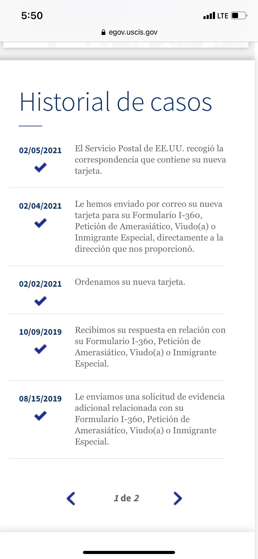 Eso pasa, muchas veces no se actualiza la pagina y no se reciben updates. Yo desde que aprobaron mi VAWA y recibi mis permisos de trabajo, nunca mas se actualizo nada en mi pagina online y han enviado a pedir examenes y en la pagina nada de actualizaciones.Y ya recibieron mis examenes y no dice nada la pagina. Es bien frecuente ,pase eso.