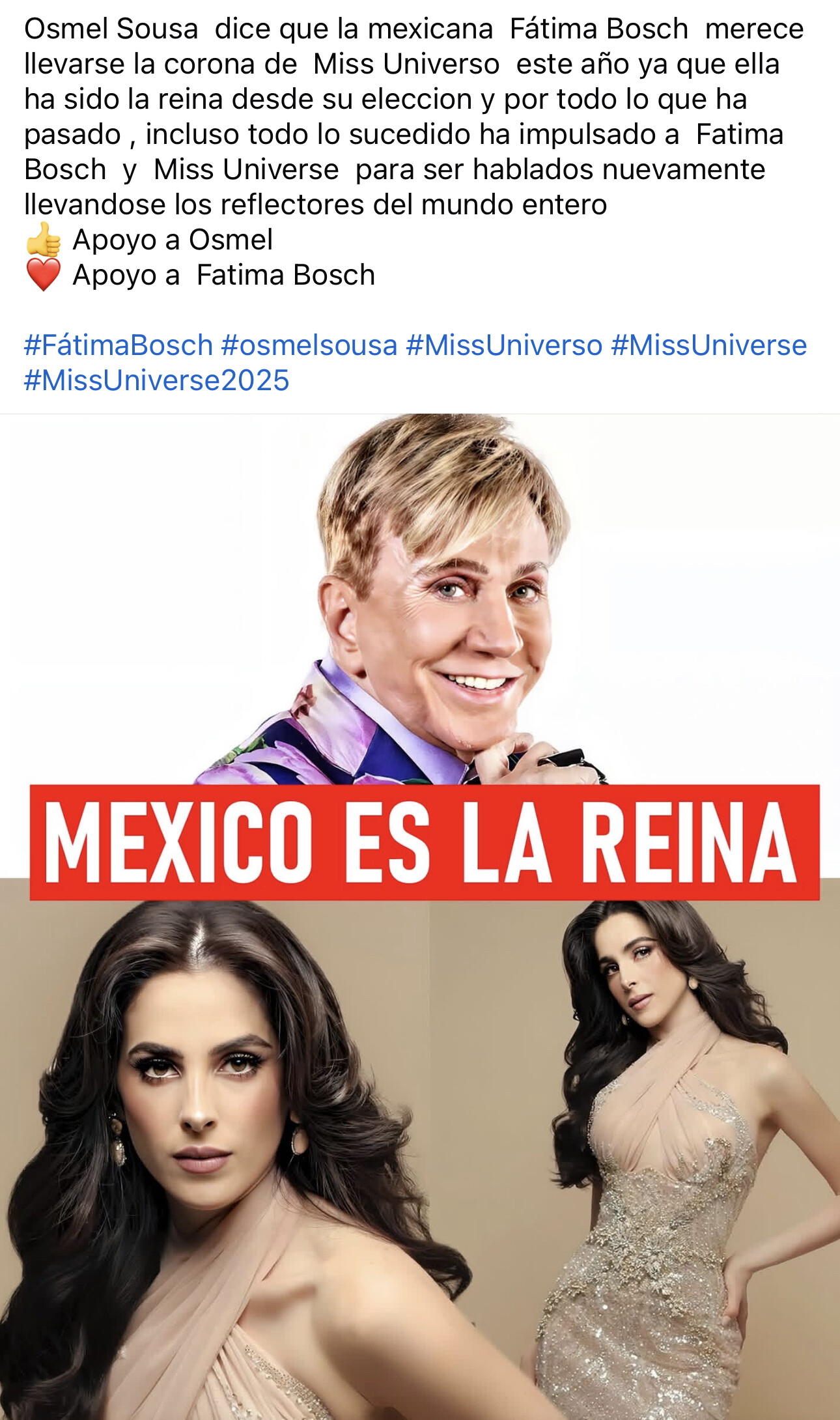 El experto en belleza Osmel Sausa comentó que Mexico. es la reina.