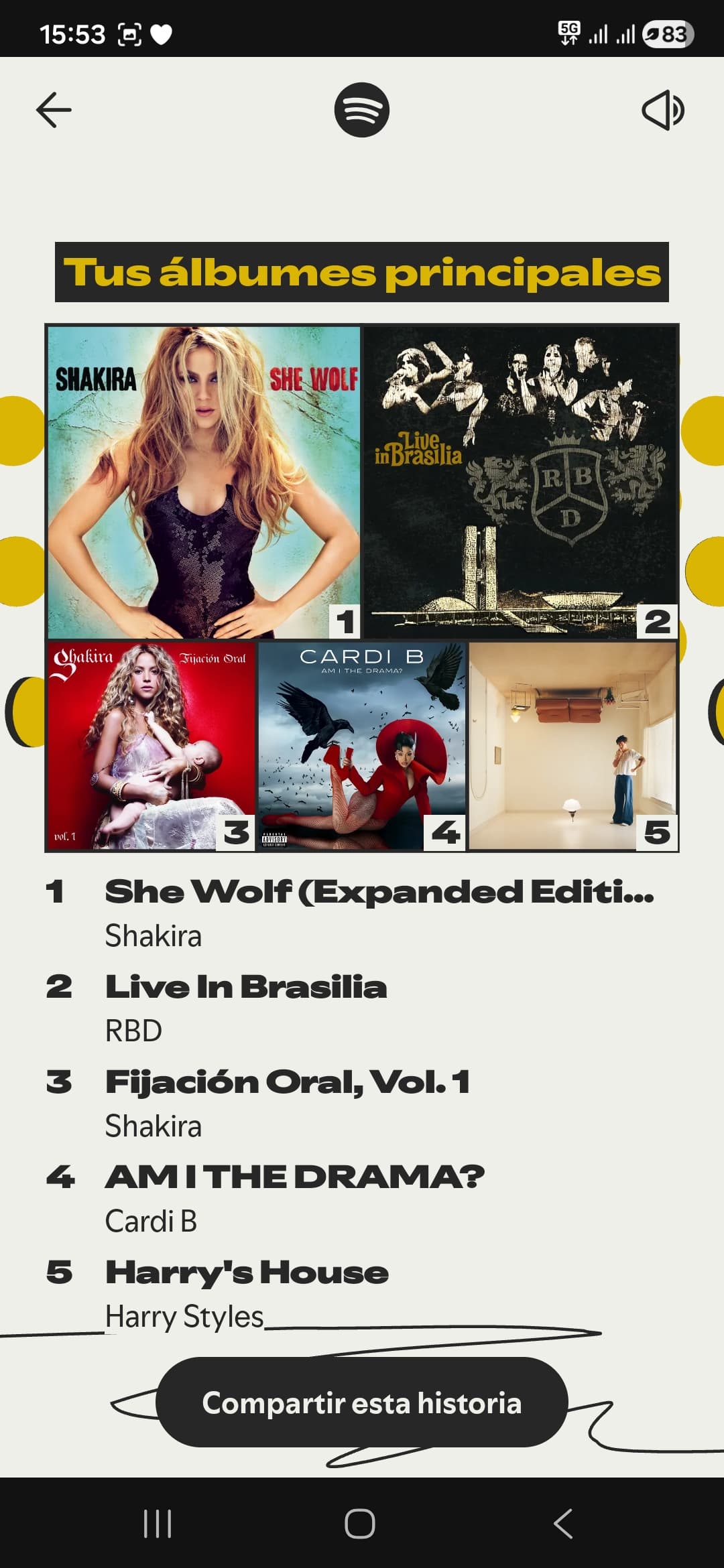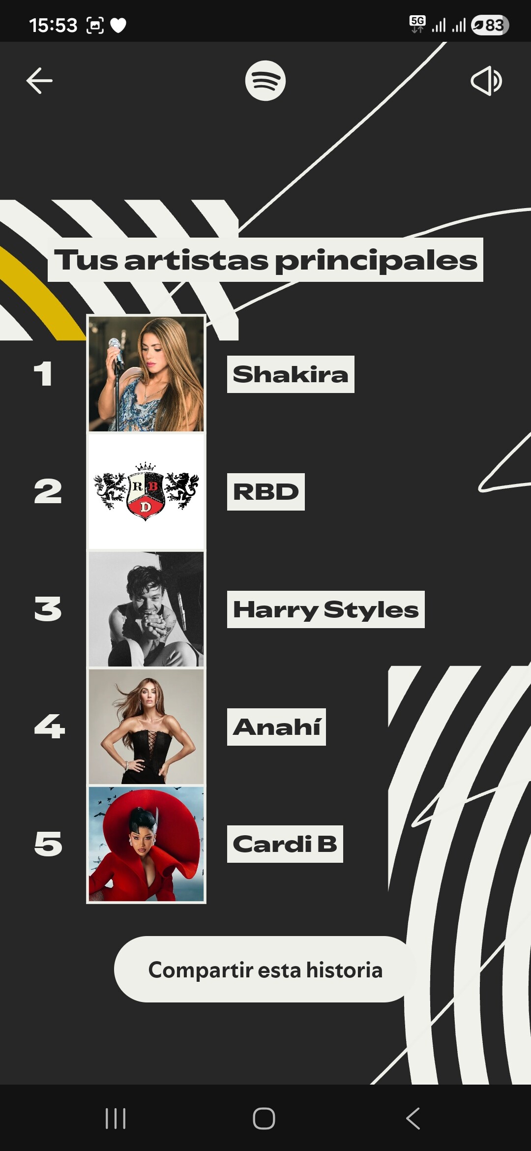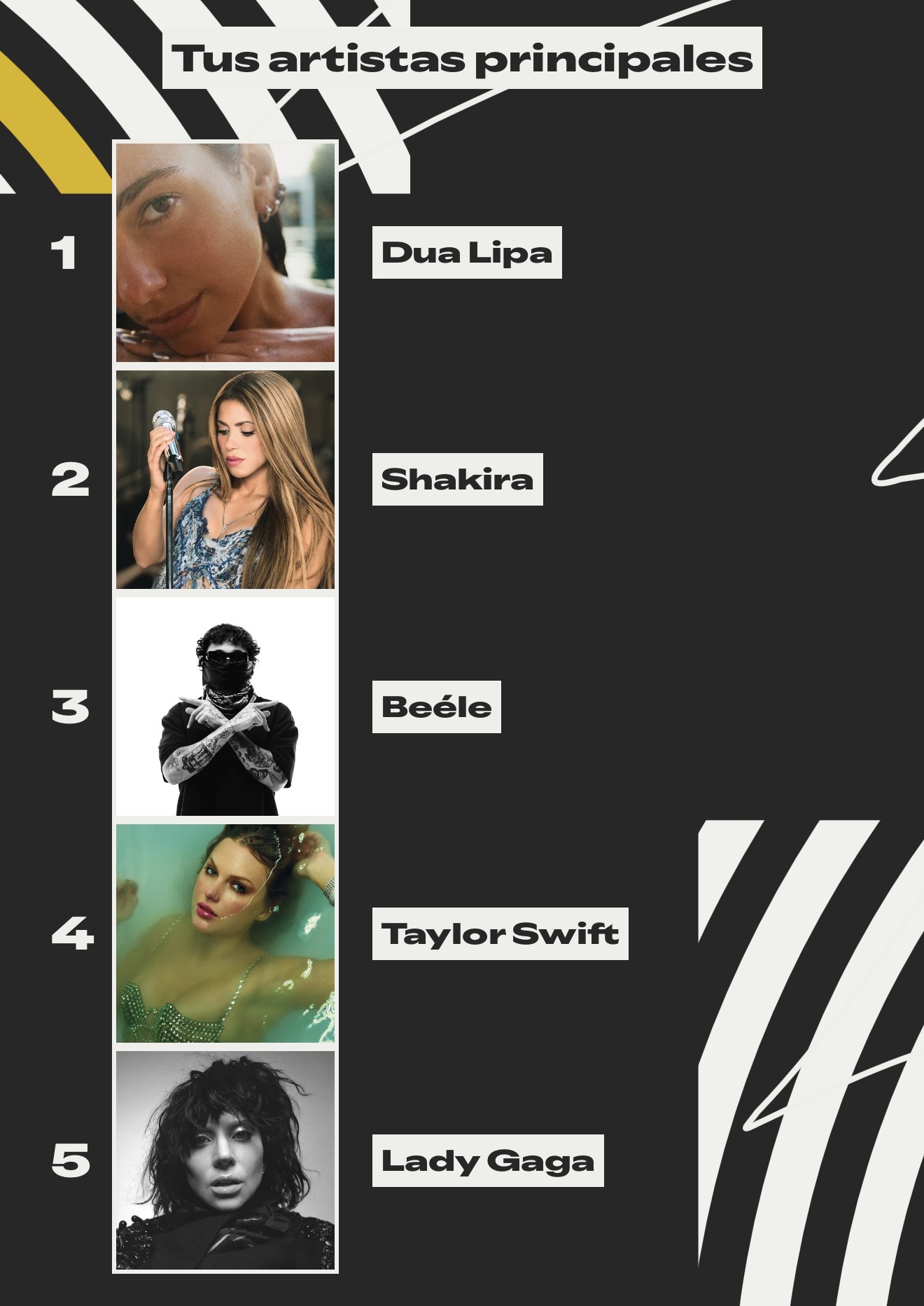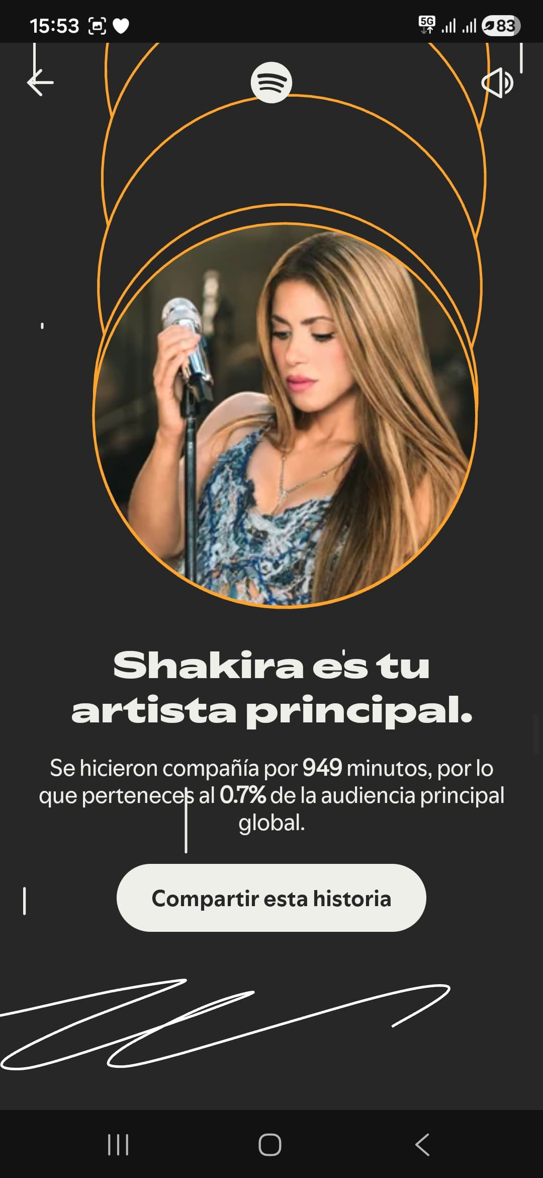 Por primera vez en años, Shakira no ocupa el primer lugar de mis artistas principales pero igual es Top 2 ![]()