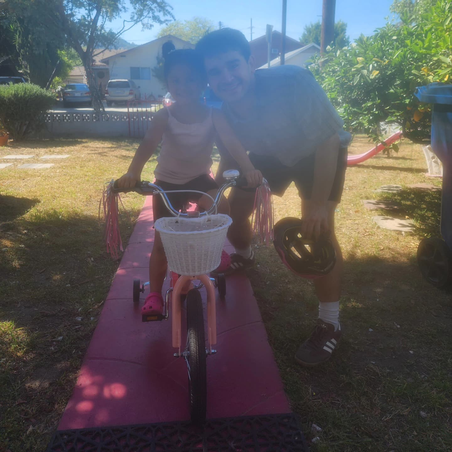 Mi nieto mayor es su padrino y viajo de New York , le regalo su primer bicicleta