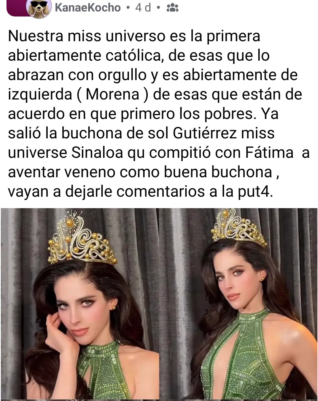 Y con lo que me cagan las malinchistas.. Por qué no hablo antes la churpia esa? Claramente sigue ardida por el triunfo de Fátima y ahora que es MU más..